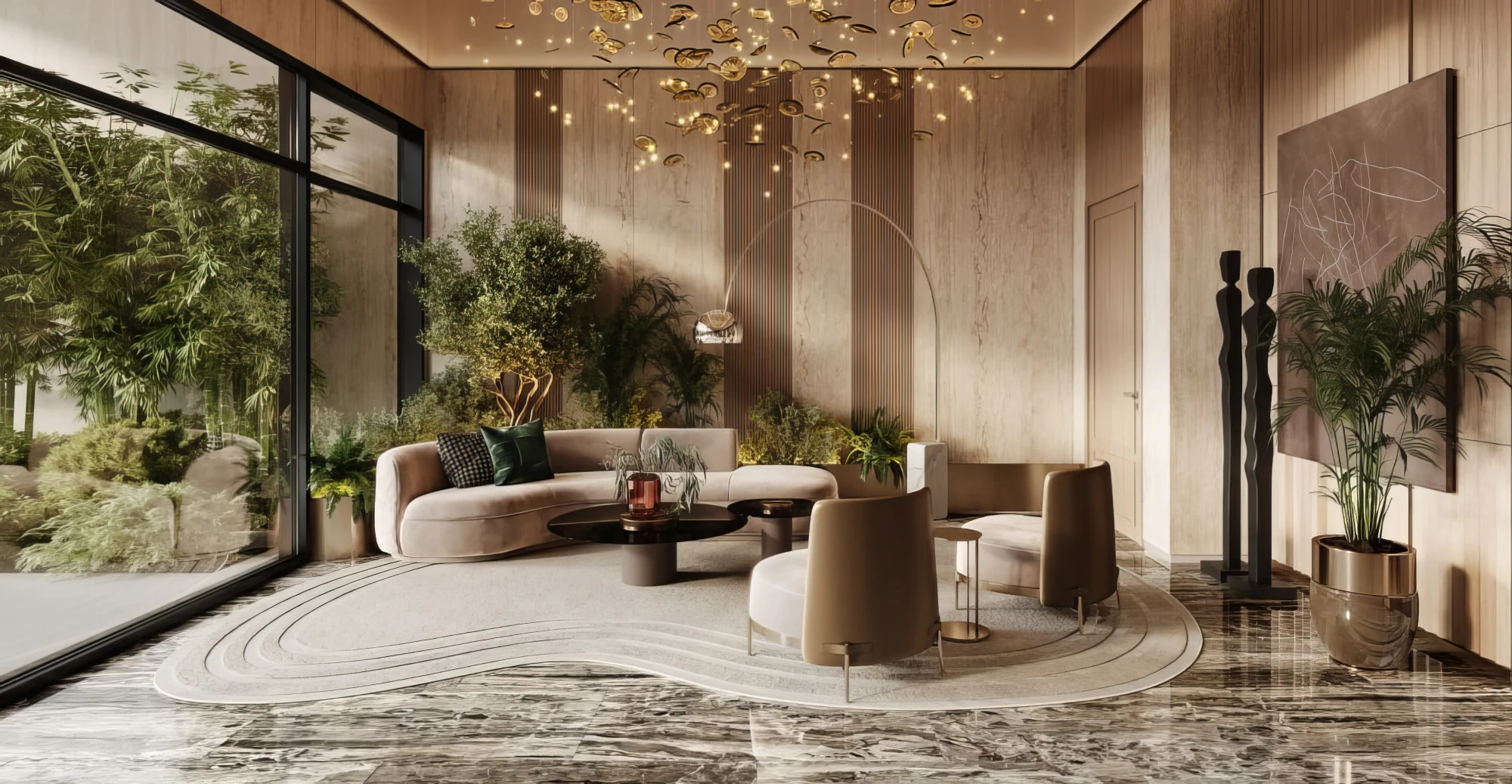 The architecture emphasizes fluid, wave-inspired lines that mirror the movement of Dubai’s dynamic lifestyle. The use of panoramic glazing enhances brightness, while rooftop landscaping integrates nature with urban form — creating a calm retreat within an active city.