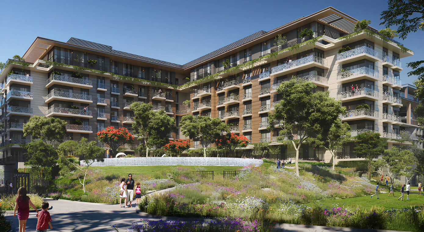 The development features three sculptural residential towers and one office tower, all connected by a shared podium. Inspired by the fluid motion of water and the rhythm of the wind, the architecture blends graceful curves with bold geometry — creating a visual statement of movement, light, and balance. Each residential tower includes a ground level, podium, 16 residential floors, and a rooftop, with layouts ranging from studios and 1–3 bedroom apartments to exclusive 4-bedroom penthouses.