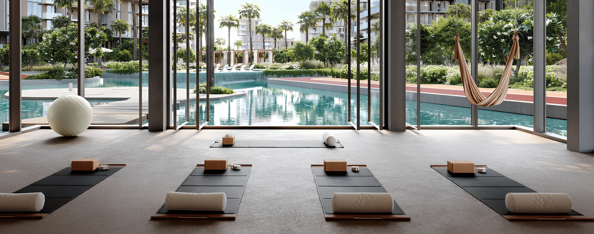 — Yoga studios and wellness spa with sauna and aromatherapy;