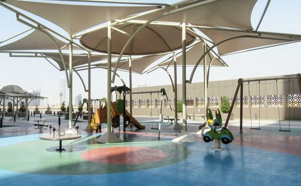 The complex is set in Dubai Sports City — a dynamic district dedicated to professional sports facilities, academies, green areas, and entertainment destinations.