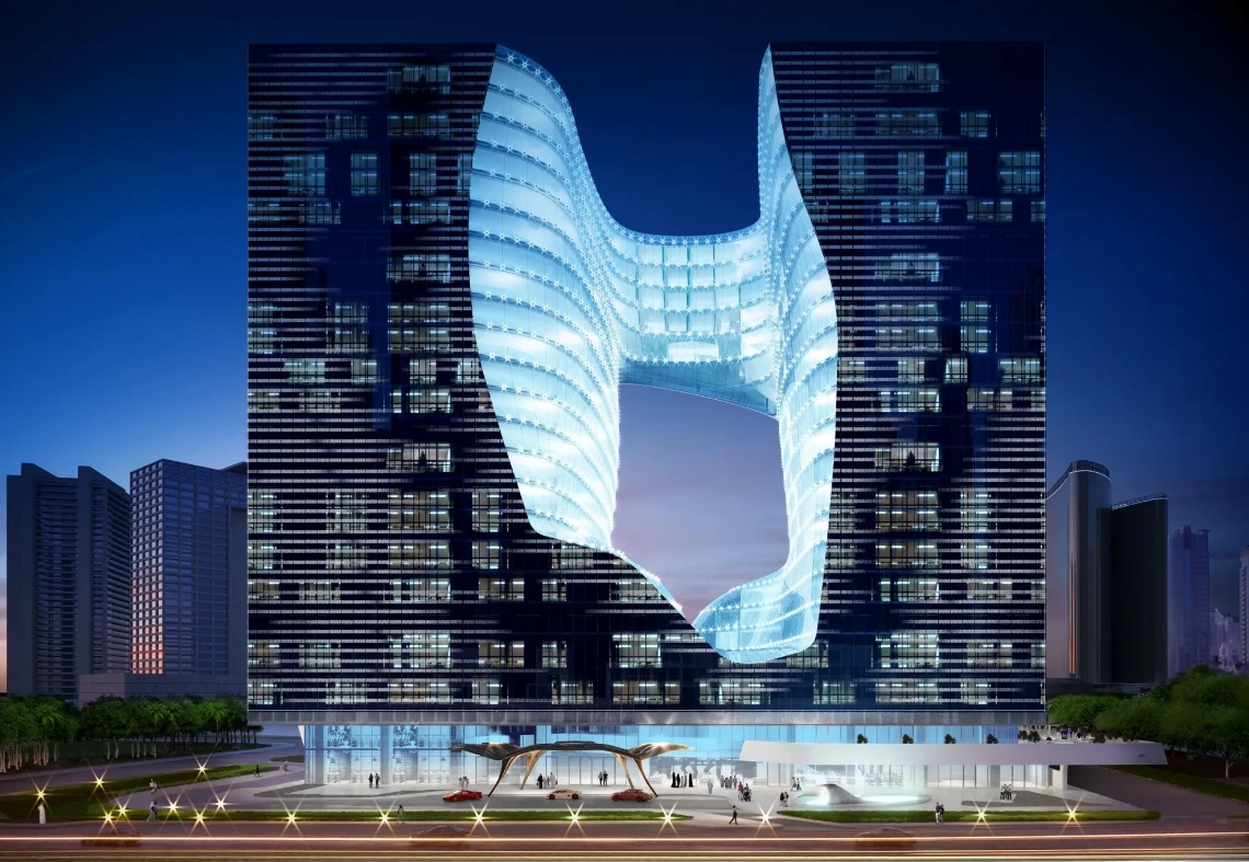 The Opus is not just a residential complex — it is an architectural icon designed by the legendary Zaha Hadid. The two interconnected glass towers form a futuristic cube with a distinctive void in the center, making it one of the most recognizable landmarks in Business Bay.