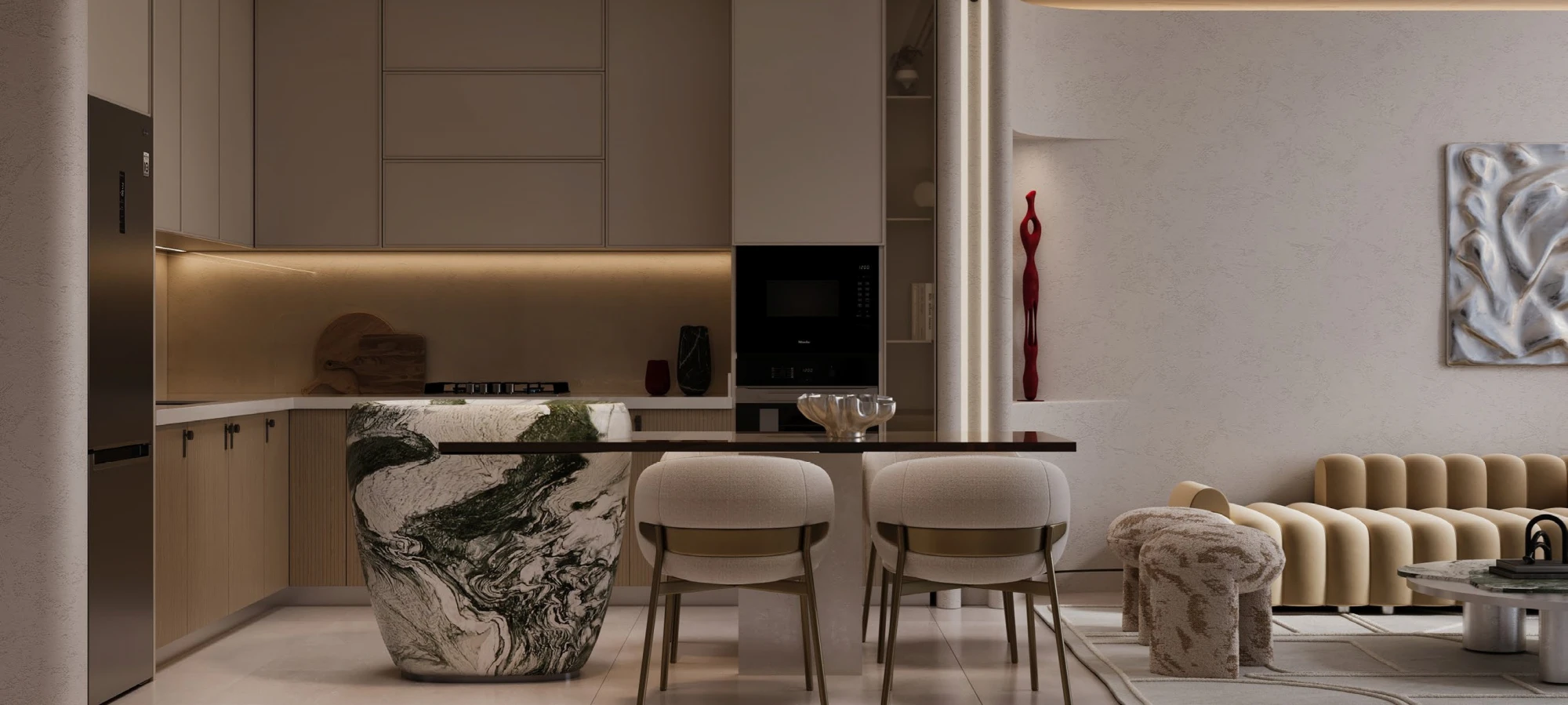 The complex offers studios and 1- and 2-bedroom apartments, each equipped with private pools, which enhance the atmosphere of secluded comfort. The interiors feature modern minimalism and exquisite harmony: spacious units with panoramic windows, soft lines, and light tones create a sense of luxury and tranquility.