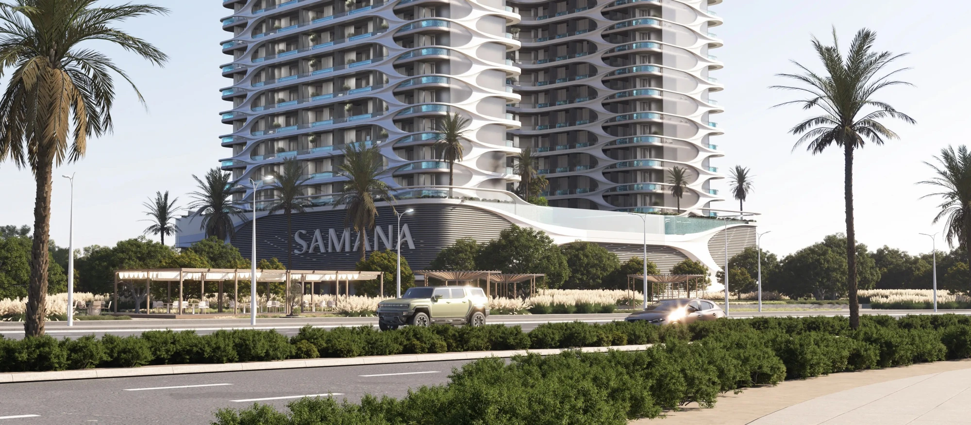 Samana Boulevard Heights is a new residential complex by Samana Developers, located in the prestigious Dubai Land Residence Complex. The building consists of three underground levels, a ground floor, seventeen residential floors, and a roof. The architecture of the complex is characterized by symmetry and refined proportions. Clean lines and expressive geometry give the building a confident and modern appearance.