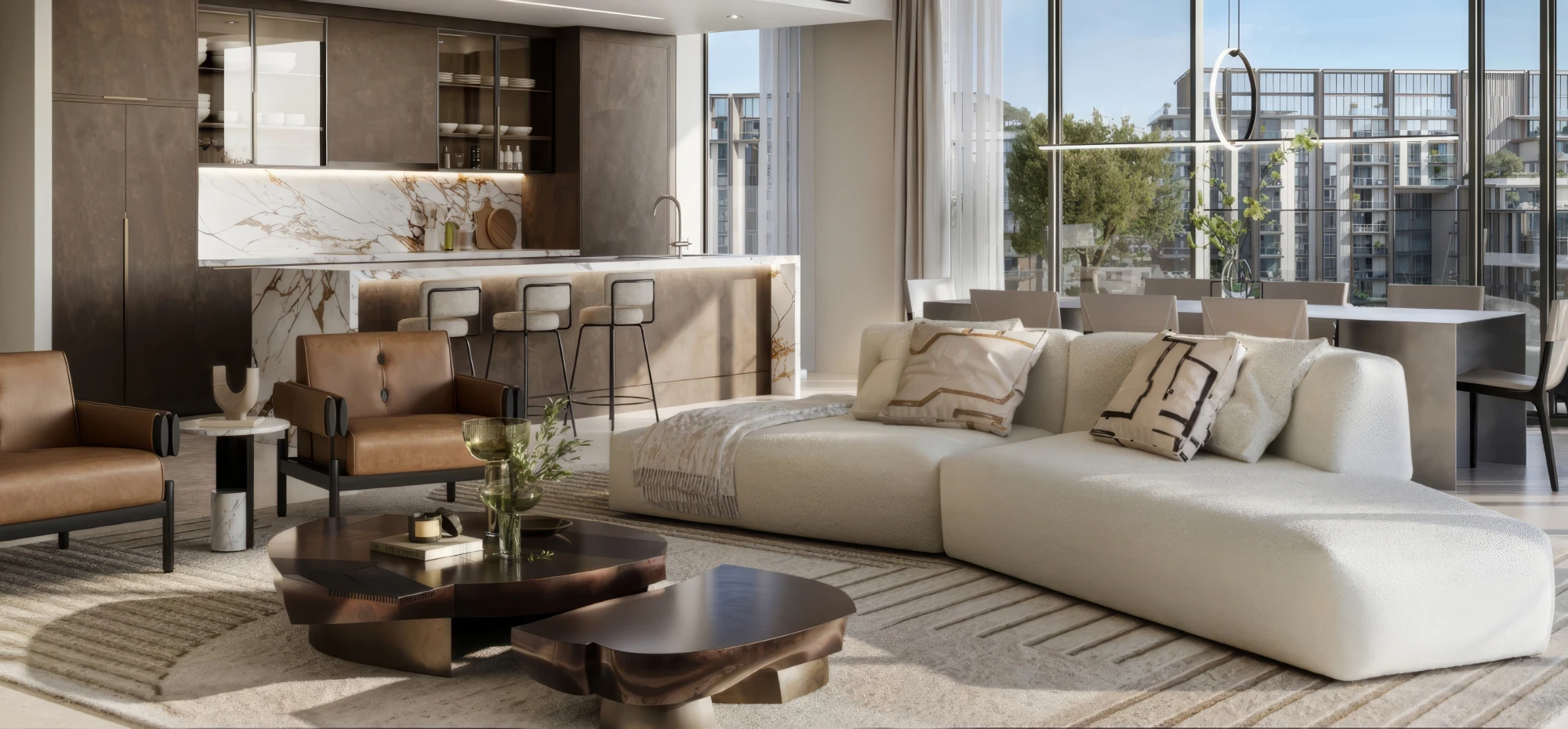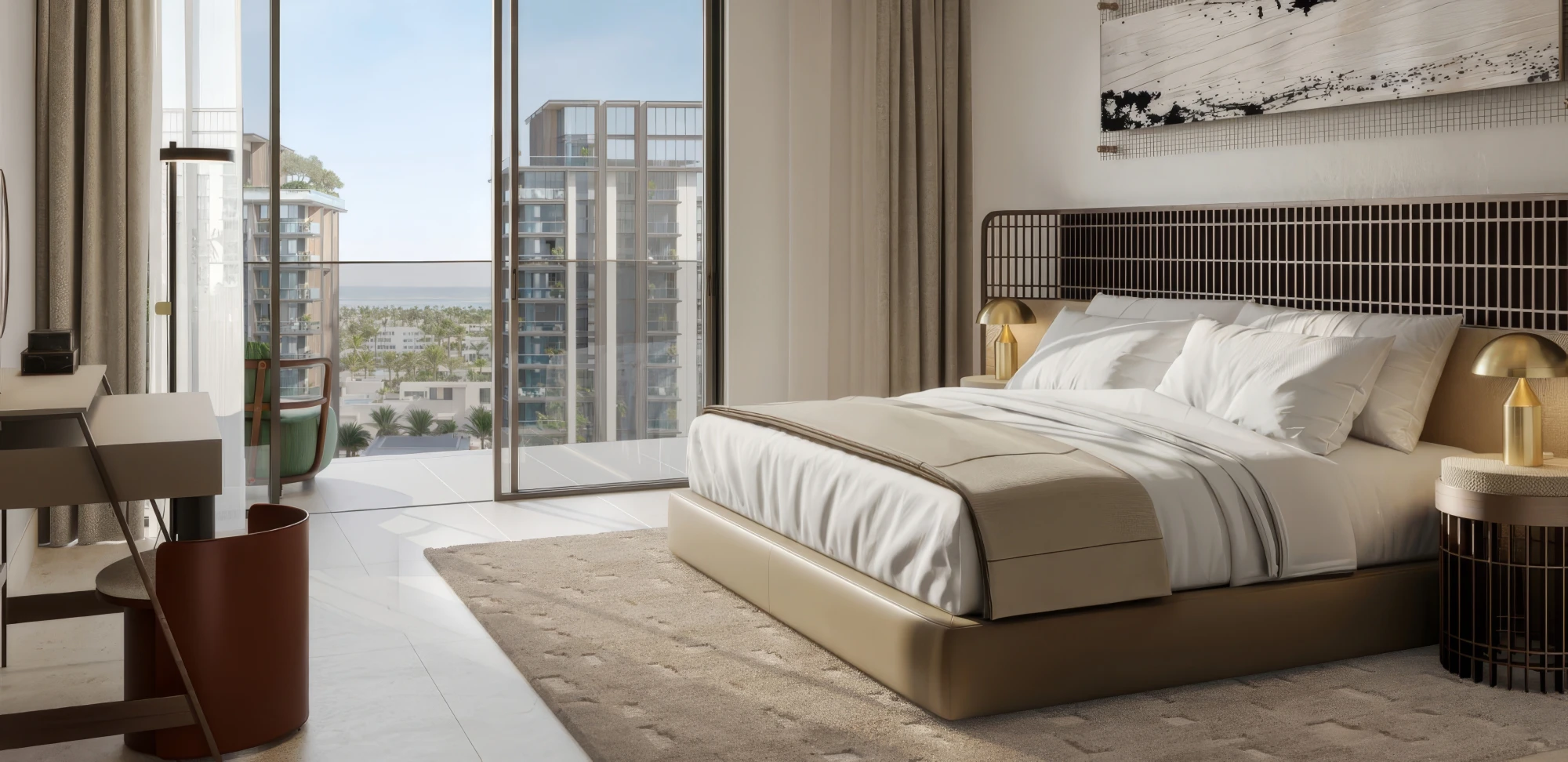 Hado by Beyond offers 1-, 2-, and 3-bedroom apartments, 3- and 4-bedroom duplex residences, as well as standalone 4-bedroom simplex residences. All layouts are designed to maximize the sense of space and natural light. Ceiling heights reach up to 3.2 meters, while panoramic glazing enhances the connection between interiors and the surrounding waterfront environment.
