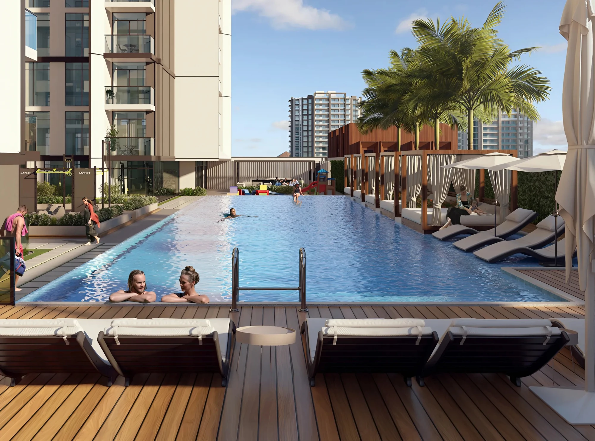 Amenities: high-speed elevators, 24-hour security and video surveillance, multi-level parking, modern gym, swimming pool, stores.