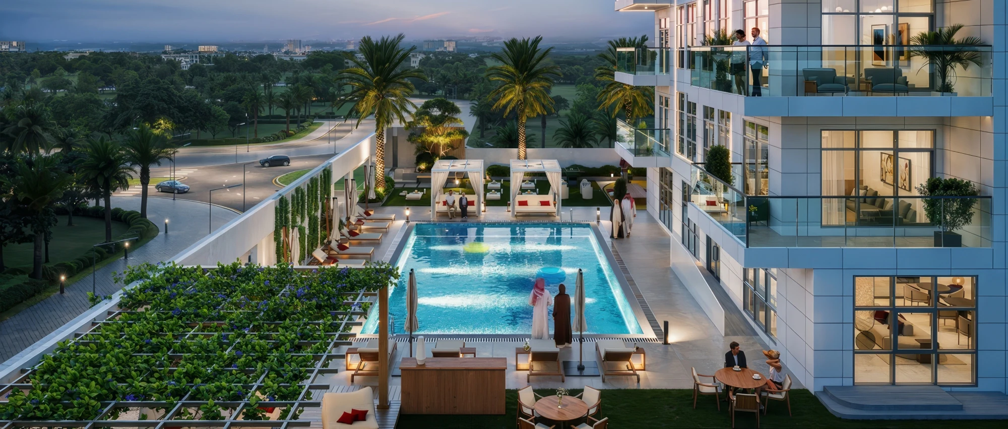 Amenities: landscaping and beautiful views of the central park, swimming pool with separate area for children, lounge chairs and cabanas, as well as picnic area, children's playground and outdoor movie theater, yoga area, outdoor exercise equipment and relaxation garden, six-level parking.