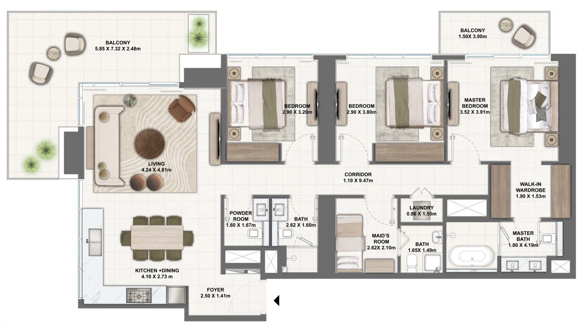 — Type: 3-bedroom apartment;