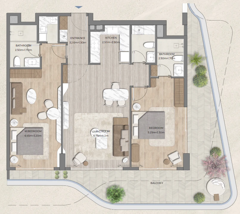 Aykon City showcases DAMAC’s signature aesthetic — dynamic lines, glass façade elements, and a contemporary visual identity. The apartment feels open and bright due to its smart layout and generous window openings.