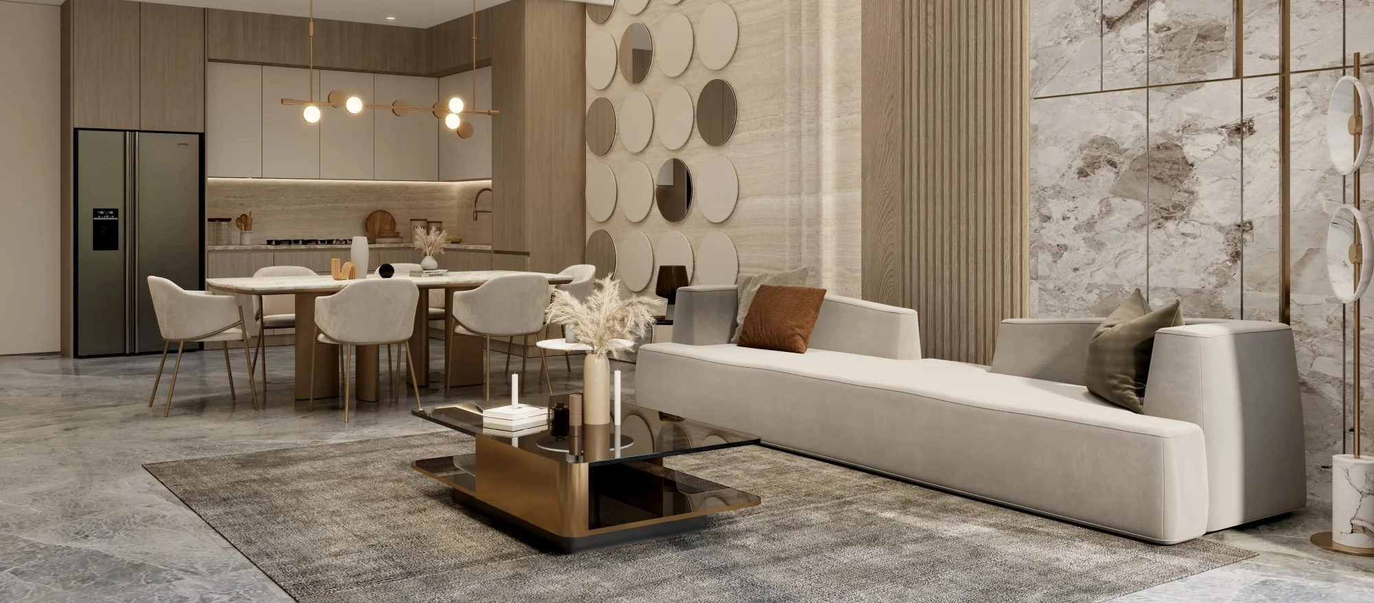 Mid-rise architecture with spacious layouts and large terraces. The concept focuses on comfortable family residences in the central part of Palm Jumeirah.