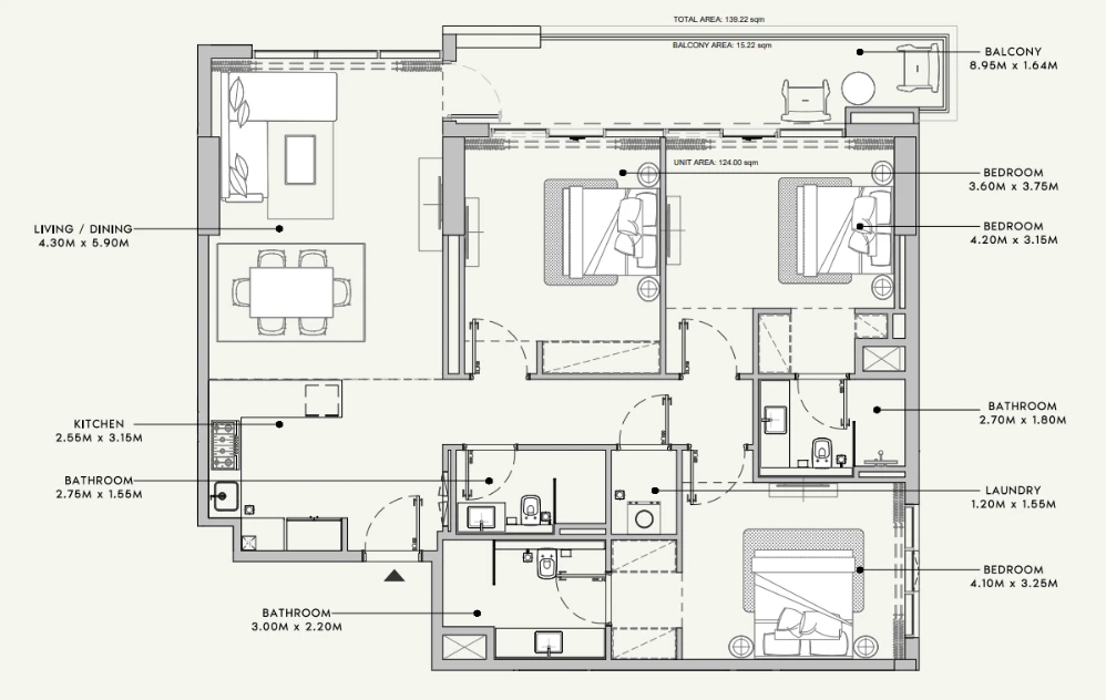 Amenities: swimming pool, gym, parking, concierge, playground and much more.