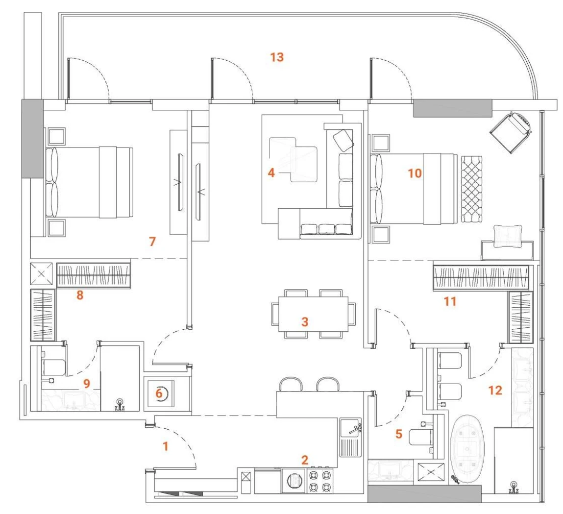 Apartments are offered unfurnished, with a fully equipped kitchen.