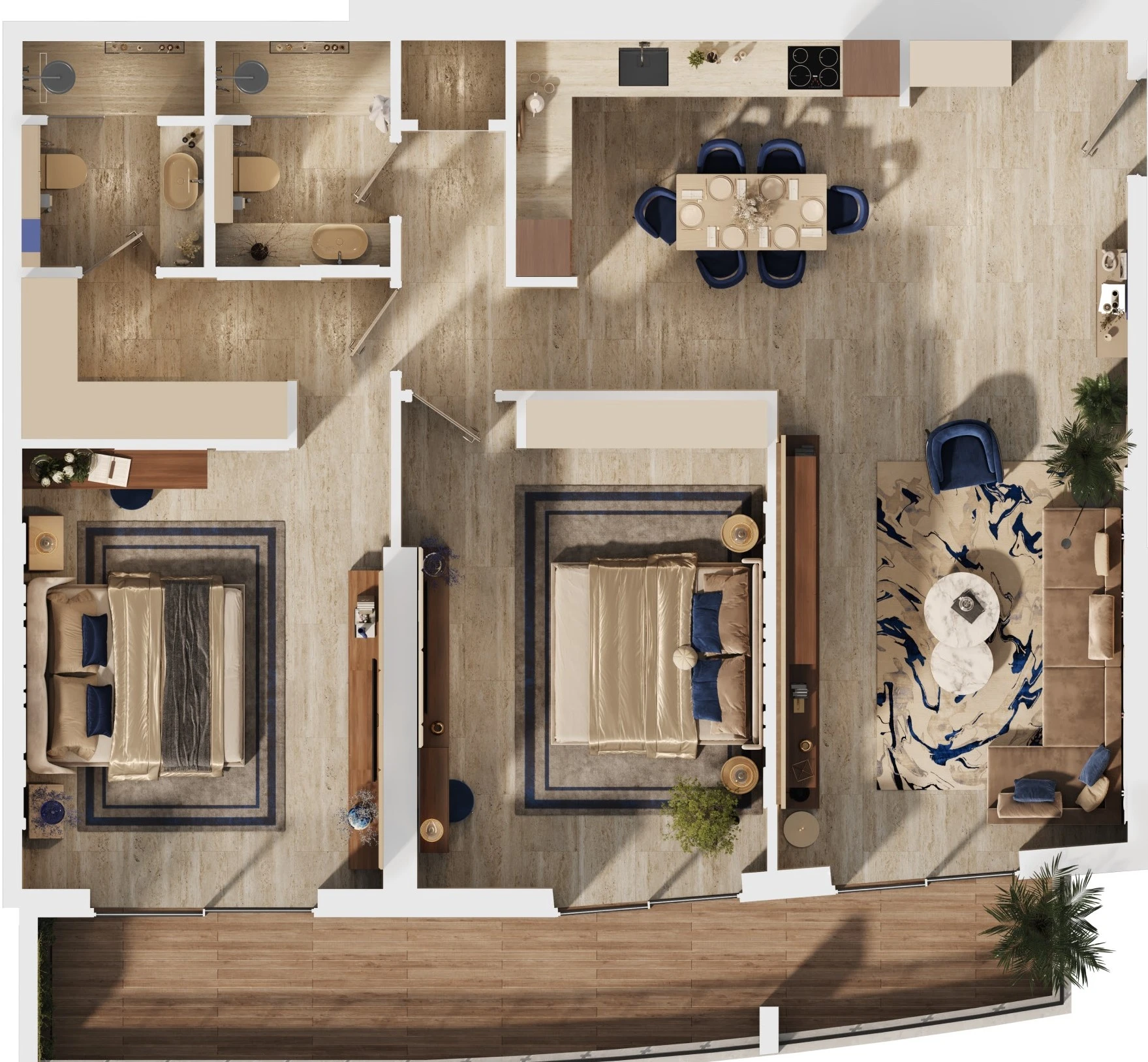 Apartments are offered unfurnished, with a fully equipped kitchen.