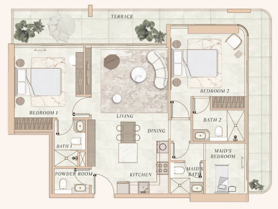 The strategic location offers convenient access to key locations in the emirate as it is being built near the major thoroughfare of Sheikh Mohammed Bin Zayed Road. Dubai Intl. Airport is approximately 30 minutes away and Al Maktoum Intl. Airport is 25 minutes away.