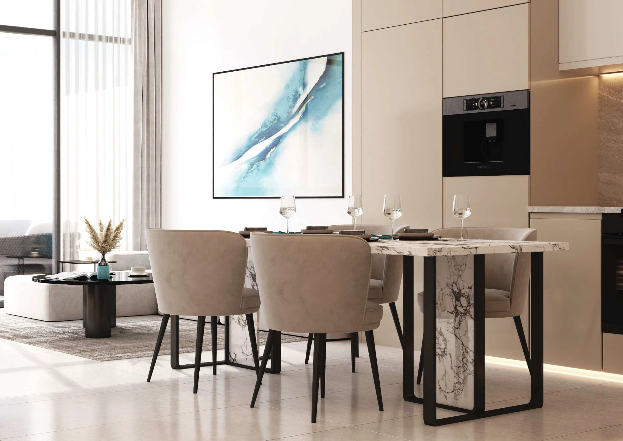 All necessary infrastructure - pharmacies, stores, metro stations - in walking distance. Nearby is The Walk promenade with plenty of cafes, boutiques and restaurants.