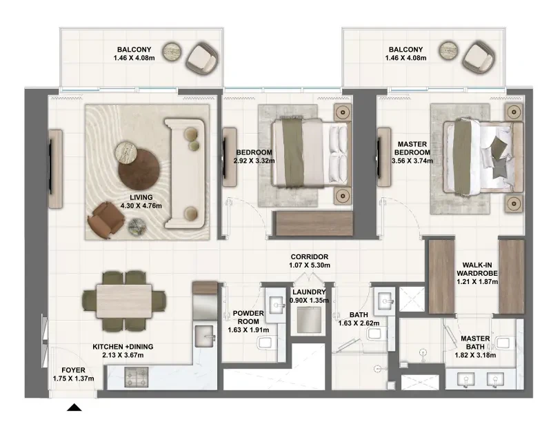 — Spacious 2 bedrooms and 2 bathrooms, offering maximum comfort and privacy;