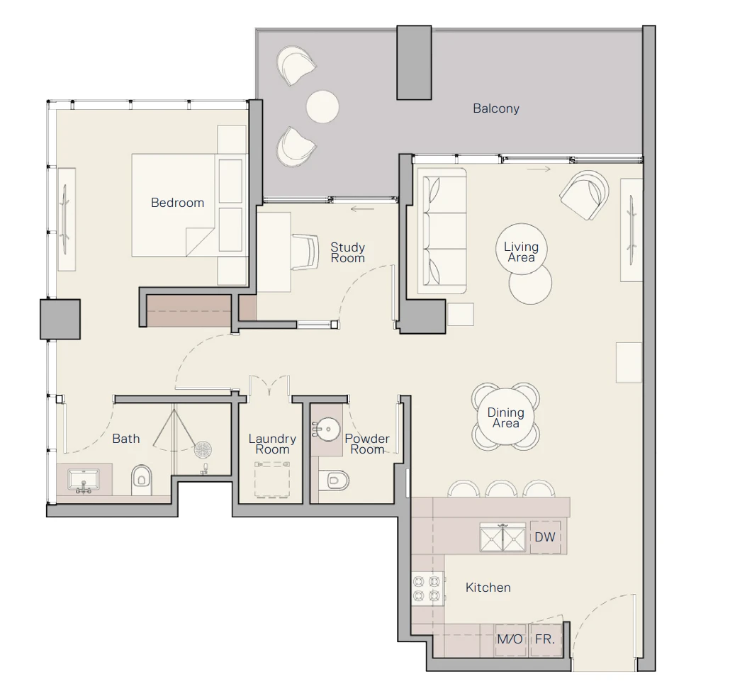 This 88 sqm 1-bedroom apartment in Damac Casa blends luxury, smart layout, and high investment value — just steps from Dubai Marina and Palm Jumeirah.
