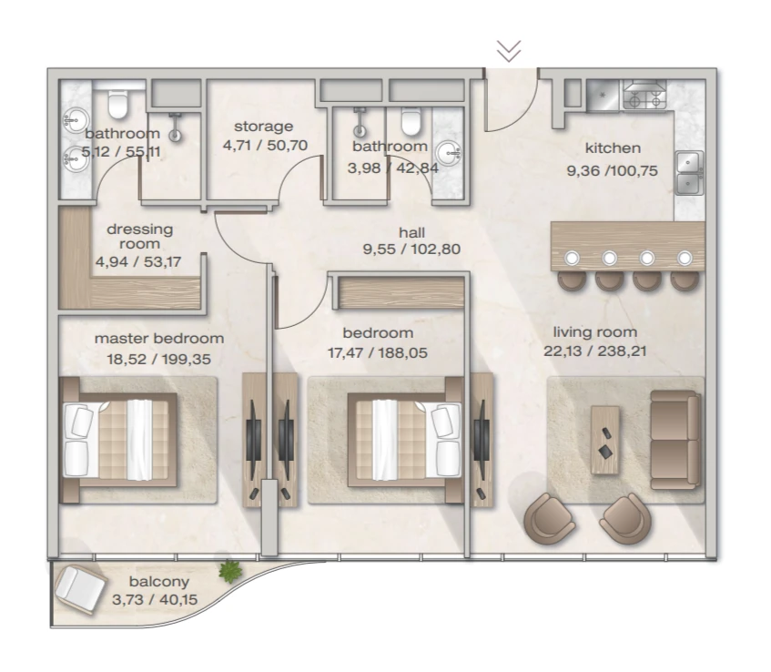 Amenities: swimming pool, children's pool, gym, children's playrooms, padel court, premium residences, resort services, marina, modern health centers and much more.