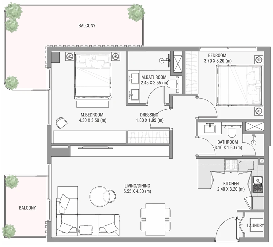 Amenities: adult pool with Jacuzzi, yoga area, children's playground, gym, outdoor garden, fitness area and more.