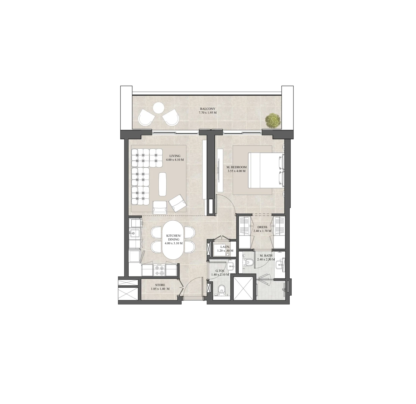— The kitchen is fully equipped, while the rest of the apartment can be furnished to your preference.