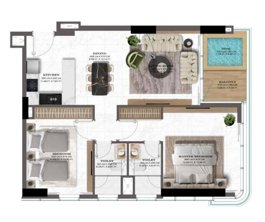 Property typeNew flatBuilding typeMonolith frameRooms2Restrooms1Area1098 ft²Floor3 / 42Ceiling height2.20 mFurnitureKitchen onlyFinishingRepair from DeveloperCompletion date2nd 2027House typeMonolith frameWindow viewRoadParkingUnder groundApartmentsYesAmenitiesSwimming pool, balcony, terrace