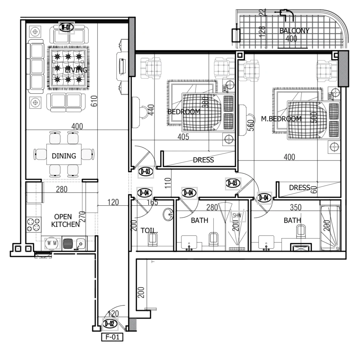 - Spacious living room with balcony access;