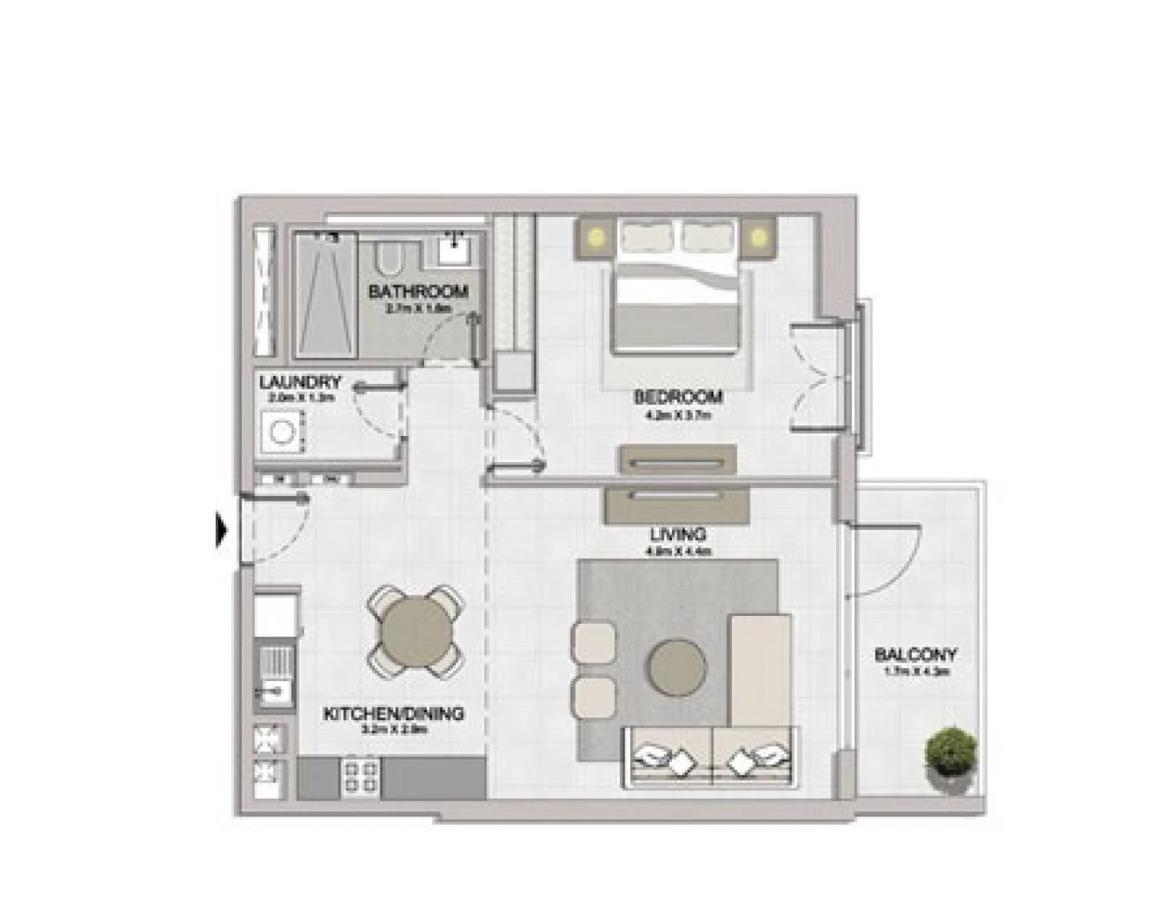– The apartment comes with premium finishing, and furniture packages can be added on request.