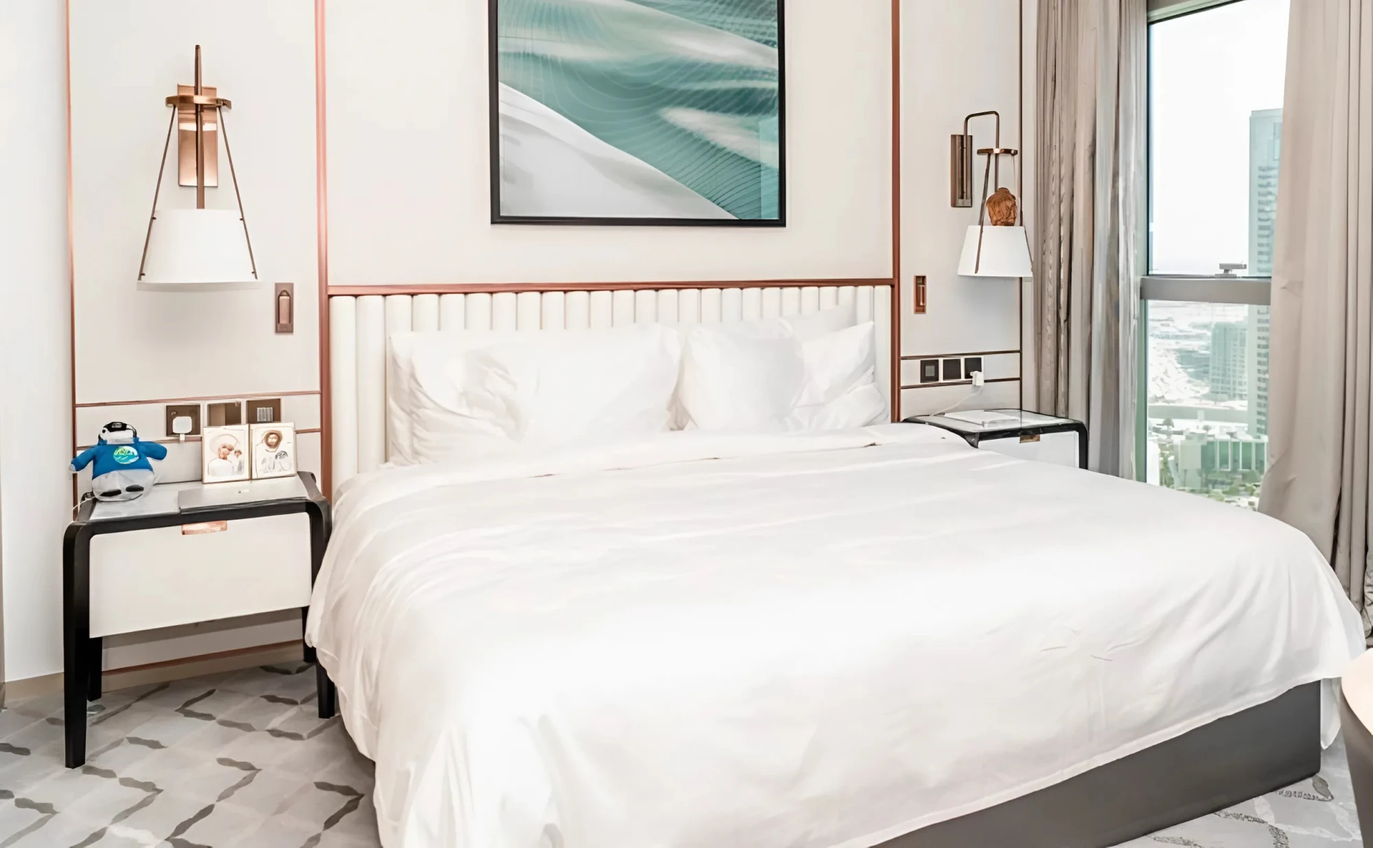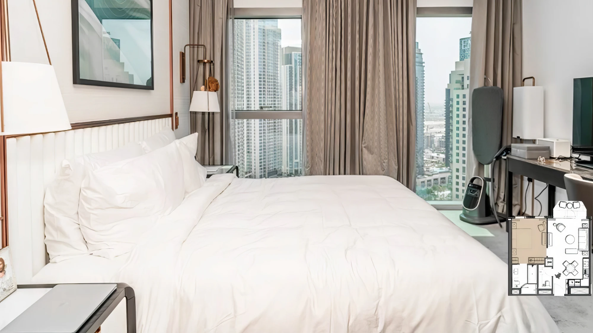 — Floor-to-ceiling panoramic windows with Downtown Dubai views;